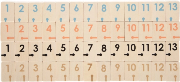 Masivni leseni deli s številčnim potiskom in simboli so jasno berljivi in prijetni na dotik. Za stabilnost in zasebnost pri sestavljanju kombinacij poskrbijo rahlo ukrivljena lesena stojala. Igra spodbuja logično razmišljanje, strategijo in koncentracijo igralcev vseh starosti.
