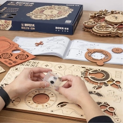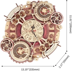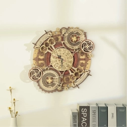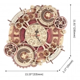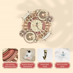 Odkrijte umetnost urarstva z našo 3D leseno mehansko sestavljanko. Ta model izstopa po svoji kompleksnosti in precizni obdelavi, ki privlači pozornost vseh ljubiteljev ustvarjalnosti in steampunk dizajna. Idealno za obešanje na steno, ta model ponuja estetsko in funkcionalno uporabo zahvaljujoč električno poganjanim uram in dekorativnemu koledarju.