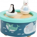 Glasbena skrinjica Arctic z arktičnim motivom otrokom prinaša pomirjujočo angleško uspavanko. Figurici polarnega medveda in pingvina se vrtita v krogu v ritmu melodije, kar ustvarja vizualno privlačen prizor. Zahvaljujoč odstranljivim lesenim figuricam na magnet lahko skrinjico enostavno prilagodite svojemu okusu.