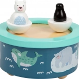 Figurici polarnega medveda in pingvina se gibljeta v ritmu melodije ter tako ponujata vizualno in zvočno doživetje.