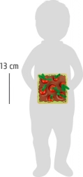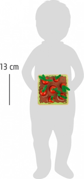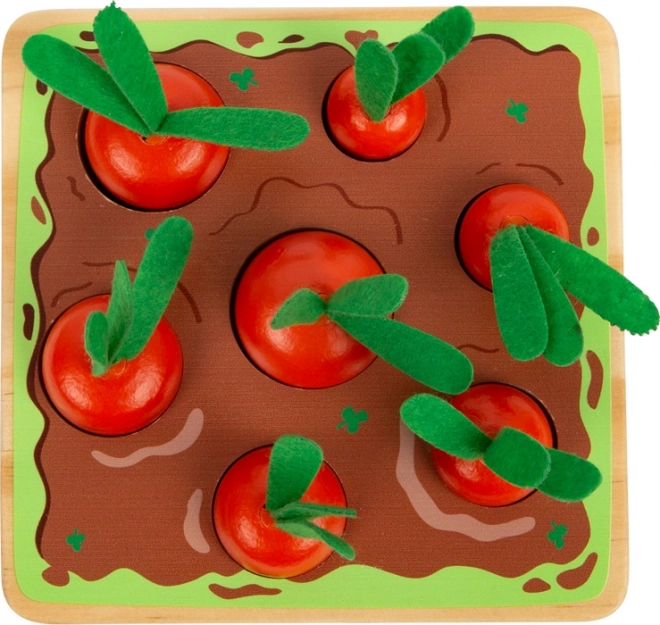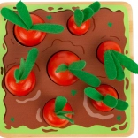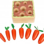Navdih iz Montessori metode otrokom omogoča učenje na zabaven način. Igra vstavljanja in razvrščanja stavlja na sedem korenčkov različnih velikosti, ki jih otroci s pomočjo primerjanja vstavijo v prave odprtine na plošči. Ta igralni set pomaga razvijati fino motoriko, razumevanje velikosti in pozornost. Poleg tega zahvaljujoč realističnemu dizajnu zelenih filcanih delov spodbuja tudi igranje vlog in razvoj domišljije mladih vrtnarjev.