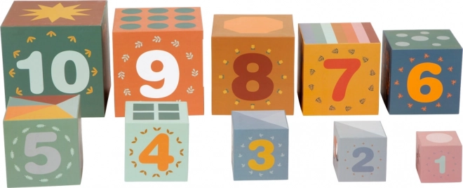 Kocke so lahke, odporne in varne za majhne otroške roke. Otroci jih lahko zlagajo v visok stolp ali vstavljajo eno v drugo, kar prihrani prostor pri pospravljanju. Praktična zasnova in kakovosten tisk zagotavljata dolgo življenjsko dobo tudi pri vsakodnevni igri.