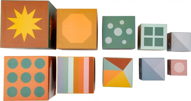 Velikostni razpon kock od najmanjše 5 cm do največje 14 cm uči otrokovo zaznavanje velikosti in razvrščanja. Lahek, čvrst karton je enostaven za držanje in prijazen do pohištva.