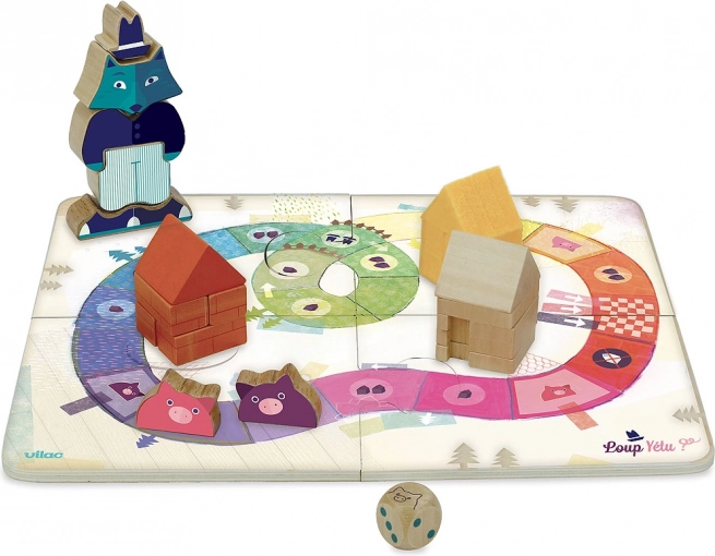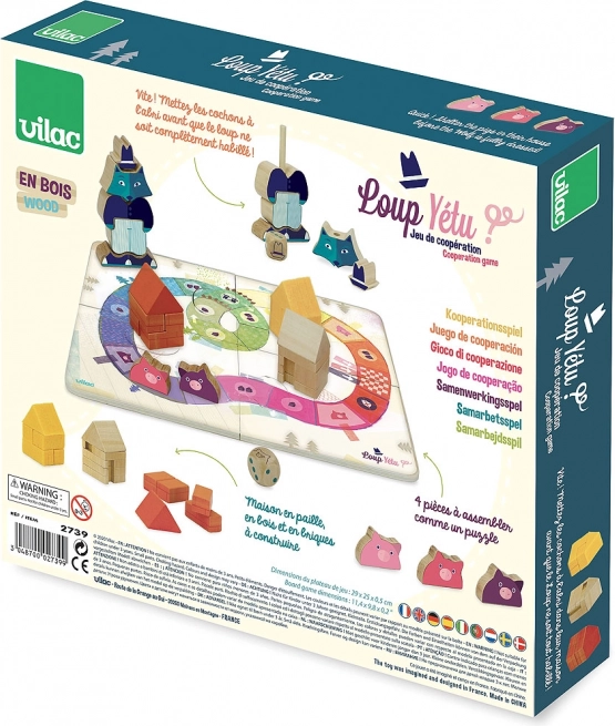 Priljubljena pravljična kooperativna igra znamke Vilac, v kateri trije prašički tekmujejo z volkom, kdo bo prej zgradil slamnat, lesen in opečnat domek. Otroci vadijo sodelovanje, logiko in finomotoriko pri sestavljanju lesenih koščkov in metanju kocke. Idealna prva družinska igra za otroke od 3 let.