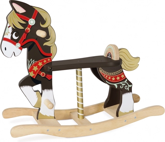 Otrokom podarite brezčasno veselje z lesenim gugalnim konjičkom iz kolekcije Petilou. Robustna konstrukcija, gladki robovi, oporni ročaji in udoben sedež zagotavljajo varnost in udobje pri vožnji. Eleganten dekor z rjavimi in zlatimi poudarki polepša vsak otroški prostor.