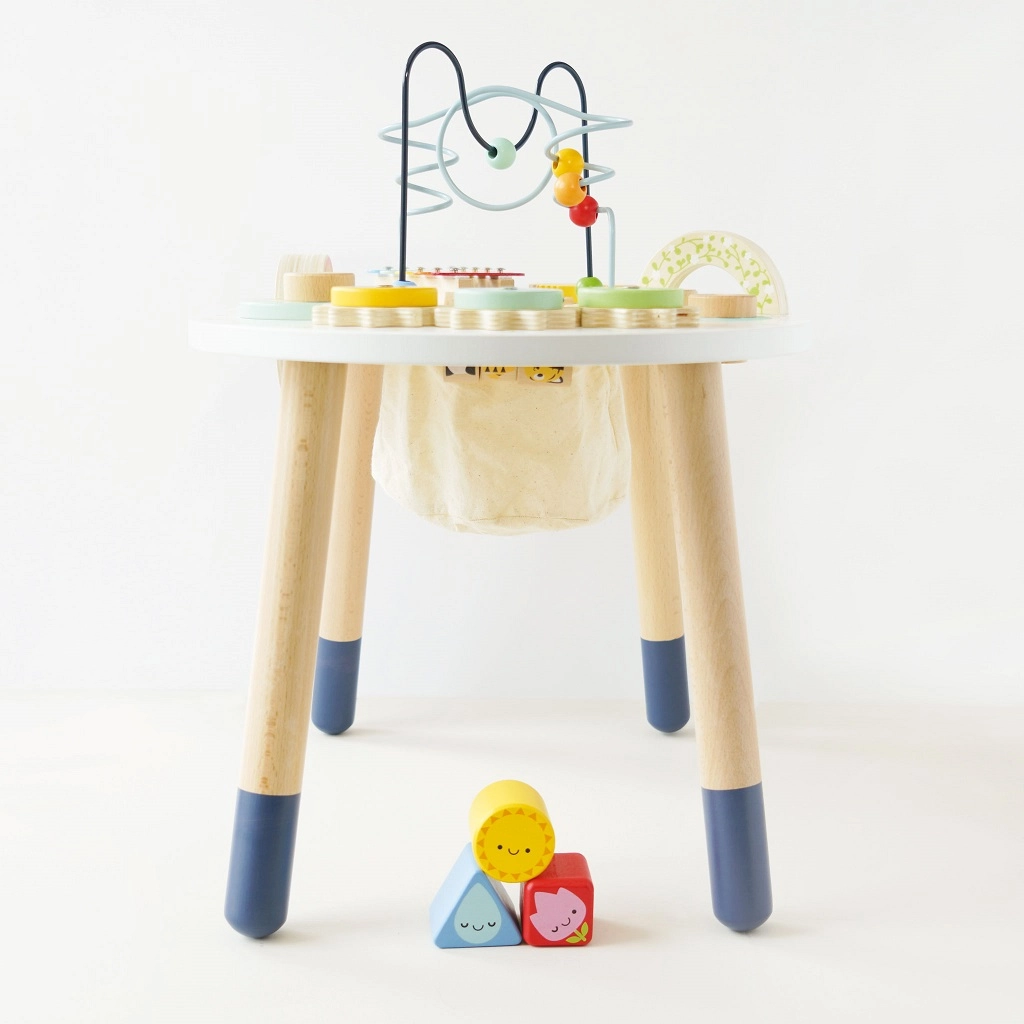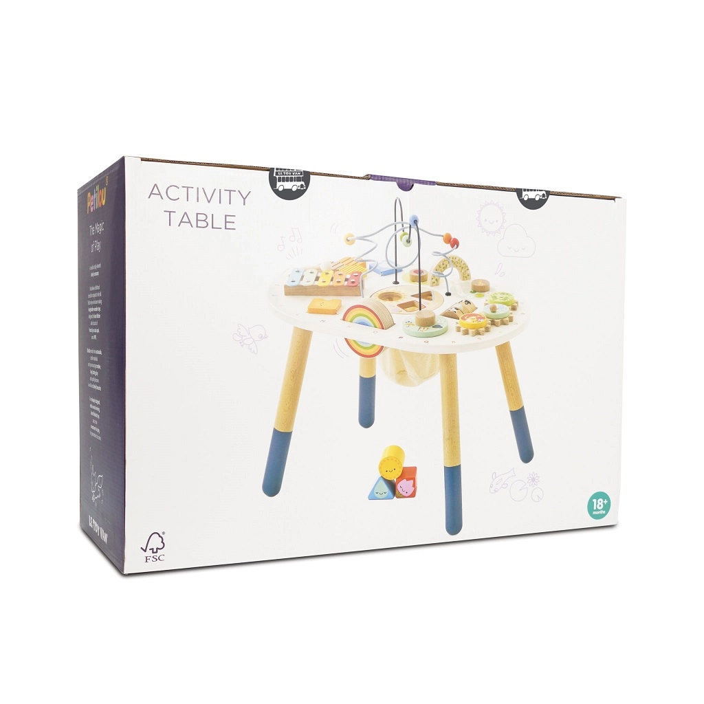 Odkrijte kakovostno leseno aktivno mizico za malčke iz kolekcije LE TOY VAN Petilou, ki spodbuja fino motoriko, čutni razvoj in kreativno igro. Ponuja koralni labirint, vstavljanko, ksilofon, zobnike in druge elemente. Izdelana je iz FSC® lesa ter pobarvana z netoksičnimi barvami za varno in dolgotrajno zabavo.