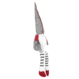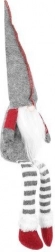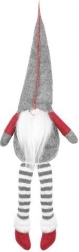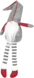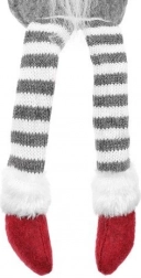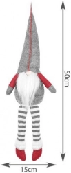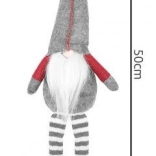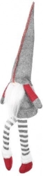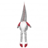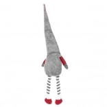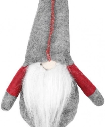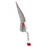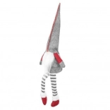Tekstilni dekorativni škrat v sivo-rdeči izvedbi ima značilno visoko koničasto kapo, dolge črtaste noge in mehak bel brk. Zahvaljujoč posebnemu profilu na zadnji strani stabilno sedi na robu mizice ali police in prostoru doda topel, domačen pridih.