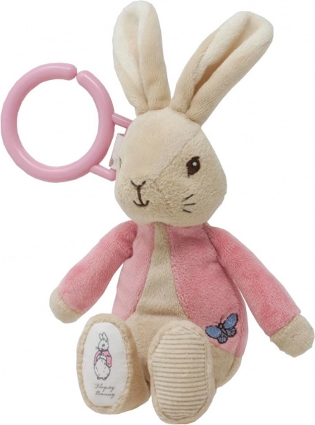 Ta plišast zajček Flopsy je idealna igrača za otroke od rojstva. Zasnovan je z mislijo na varnost in zabavo otrok. Flopsy se zlahka pritrdi z rožnatim plastičnim obročkom na katerikoli voziček, avtosedež ali posteljico, kar ga naredi odličnega spremljevalca na poti.