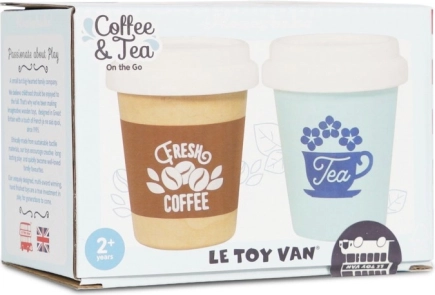 Stilski otroški komplet dveh lončkov za kavo in čaj za s sabo znamke LE TOY VAN za realistično igro. Izdelano iz FSC lesa, brez plastike in pobarvano z netoksičnimi barvami na vodni osnovi. Odlično za otroško kuhinjico in igro trgovinice, spodbuja kreativnost in razvoj socialnih veščin.
