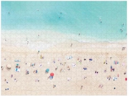 Dvostranska izvedba prinaša dvojno veselje pri sestavljanju. Ena stran prikazuje živahno plažo s sončečimi se obiskovalci, druga razkriva turkizen ocean in podvodni svet.