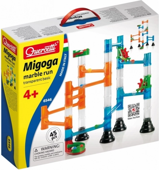 Kroglična proga Migoga podjetja Quercetti pomaga razvijati otroško motoriko in ustvarjalnost. Otroci lahko načrtujejo lastne proge in opazujejo, kako kroglice potujejo skozi njihove konstrukcije.