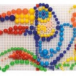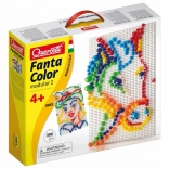 Quercetti Fanta Color Modular je izobraževalna igrača za otroke od 4 do 8 let, ki spodbuja ustvarjalnost in spretnost z ustvarjanjem raznolikih mozaikov s pisanimi barvnimi žebljički.