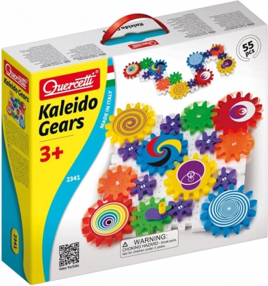 Konstrukcijski komplet Quercetti Kaleido Gears je sestavljen iz perforiranih plošč, osi, zobnikov in figuric različnih živalic ter dreves. S pomočjo ključa je mogoče mehanizem spraviti v pogon, kar otrokom omogoča raziskovanje osnovnih mehanskih principov ter jih uči razumevanja vzroka in posledice.