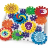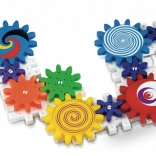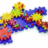 Set barvnih zobnikov in figur omogoča otrokom ustvarjanje različnih struktur, pri čemer se na zabaven način učijo osnov mehanike.