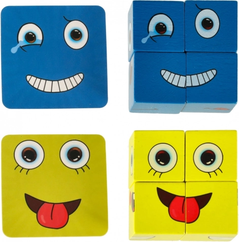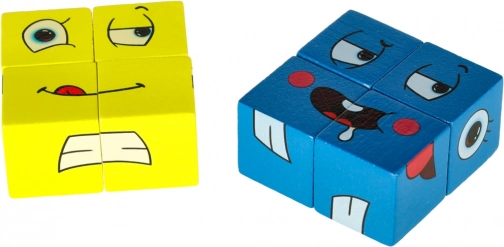Odkrijte zabavno logično igro, ki pomaga otrokom in odraslim prepoznavati in izražati čustva. S pomočjo lesenih kock in kart z izrazi obrazov sestavljate obraze po predlogi na čas. Igra razvija logično mišljenje, kreativnost in fino motoriko, je varna in je zaradi praktične pločevinaste škatlice idealna tudi za na pot.