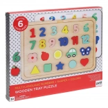 Petit Collage vstavljanka s številkami in oblikami je odličen način, kako otroke naučiti osnov matematike in prepoznavanja oblik. Vsebuje 22 koščkov in 3 dvostranske kartice z besediščem v šestih različnih jezikih: angleščini, španščini, francoščini, nemščini, nizozemščini in italijanščini. Vstavljanka je izdelana iz visokokakovostnega lesa s certifikatom FSC®, kar zagotavlja okolju prijazno in trajnostno proizvodnjo.