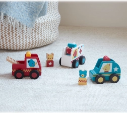 Podarite svojim otrokom ure zabave in ustvarjalnega razvoja s tem kompletom reševalnih avtomobilčkov. Vsako izmed robustnih in vzdržljivih vozil je izdelano iz 100% FSC® certificiranega lesa, kar zagotavlja, da material prihaja iz odgovorno upravljanih gozdov.