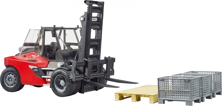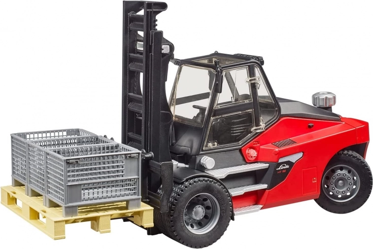 Realistični model viličarja LINDE HT160D v merilu 1:16 navdušuje s precizno izdelavo, enostavnim upravljanjem in odličnimi manevrskimi sposobnostmi. Ponuja nastavljive in snemljive vilice, dviganje ter nagibanje bremena z eno roko in odpirajoča se vrata kabine. Del pakiranja sta paleta in 3 škatle za takojšnjo igro. Združljiv z figurami BWORLD, izdelano v Nemčiji iz kakovostne ABS plastike.