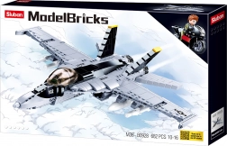 Ta realistična sestavljanka lovca F/A‑18 Super Bumblebee iz serije SLUBAN ModelBricks ponuja dovršen reaktivni letalnik s podrobnim kokpitom, oborožitvijo na krilih ter spremljevalnim motorjem z minifigurico. Zaradi robustne konstrukcije iz kakovostnega ABS plastika je model idealen za igro in razstavljanje.