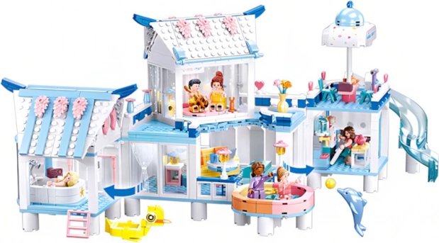 Vstopite v svet kreativnega sestavljanja s to plavajočo vilo z bazenom, ki je sestavljena iz 938 delov. Ne samo, da razvija domišljijo in fino motoriko, ampak tudi omogoča otrokom, da postanejo arhitekti svoje zgodbe. Komplet vsebuje 7 podrobno dodelanih figuric, ki imajo inovativen dizajn z vrtljivimi in nihajočimi deli telesa, kar zagotavlja še več zabave pri igri.