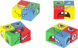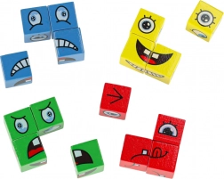 Gladko brušene kocke s potiskom oči in ust omogočajo sestavljanje desetine izrazov. Trpežne, varne in prijetne na dotik.