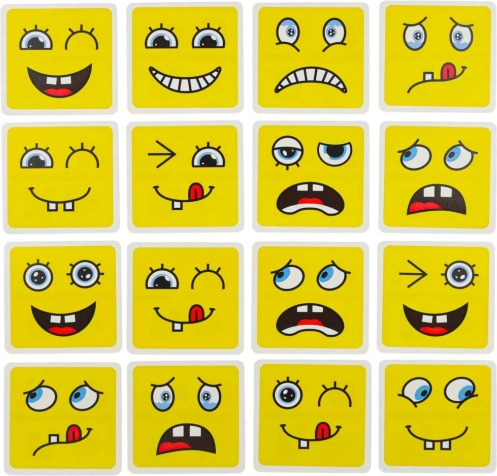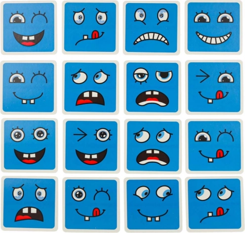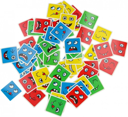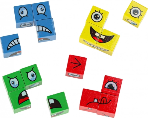 Zabavna logična igra za otroke in odrasle, ki razvija prepoznavanje čustev, logično razmišljanje in fino motoriko. Obrnite barvite lesene kocke in po navodilih na kartah sestavite pravi obrazni izraz – zmaga tisti, ki v najkrajšem času ustvari največ kombinacij. Varna lesena izvedba, 64 kart z izrazi in 16 kock v štirih barvah za neskončno mero zabave in učenja.
