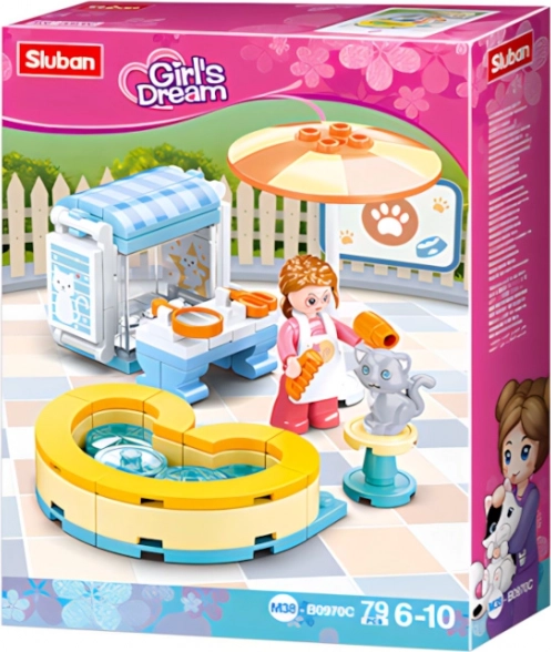 Odkrijte čar nege hišnih ljubljenčkov s sestavljanko Sluban Girls Dream Mačji salon. Otroci si zgradijo svoj salon za mačke, kjer lahko skrbijo za svoje kosmate prijatelje ter razvijajo domišljijo in fino motoriko. Set je zasnovan za preprosto in zabavno sestavljanje, kakovostna ABS plastika pa prenese tudi zahtevnejšo igro.