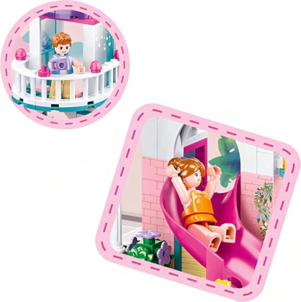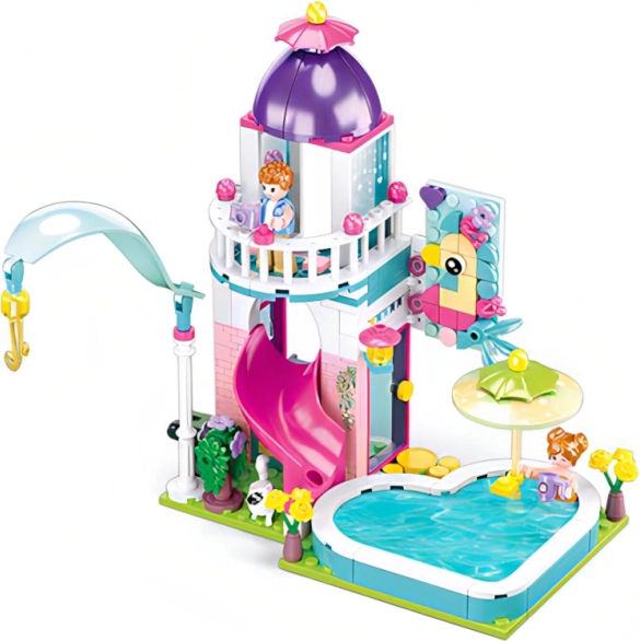 Sluban hiška s toboganom v bazen je zabavna in kreativna sestavljanka, ki jo je mogoče preprosto kombinirati z drugimi seti. Odlično razvija otroško domišljijo in motorične spretnosti.