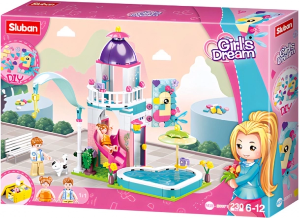 Odkrijte čar sestavljanke Sluban hiška s toboganom v bazen z 230 deli in dvema figuricama, zasnovane za srednjo zahtevnost. Figurice so inovativne z gibljivimi deli, celoten set pa je izdelan iz kakovostne in zdravju neškodljive ABS plastike.