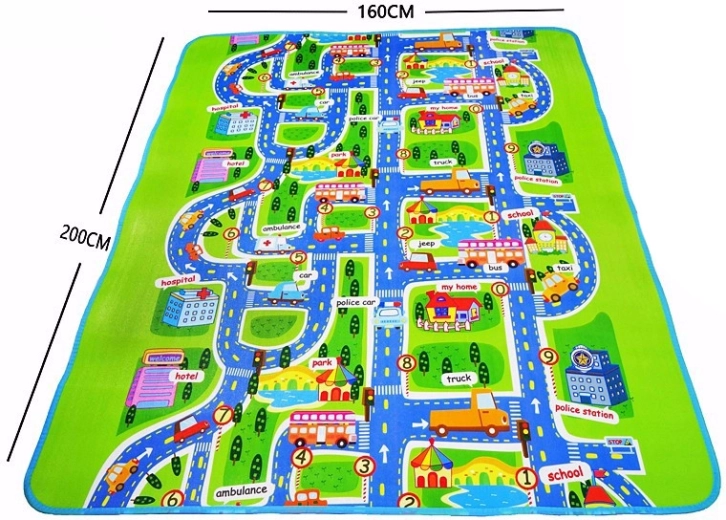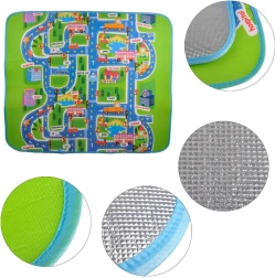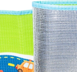 Podloga izolira proti mrazu in ublaži padce. Vaš otrok se bo lahko varno igral na tleh. Popoln dodatek za otroško sobo, ki bo popestril igro vsakega otroka. Podloga ima spodaj plast toplotno izolacijske folije, zato jo lahko vzamete na vrt ali plažo.
