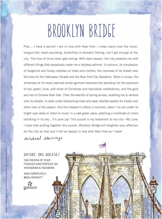 Vrhunska sestavljanka GALISON Brooklynski most, 1000 koščkov. Recikliran papir, netoksična črnila, natančni izseki, priložen poster. Idealno darilo od 8 let naprej.