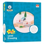 Izdelan iz kakovostnih in odgovorno pridobljenih naravnih materialov, ta set spodbuja domišljijo, spretnost in koordinacijo pri otrocih. Železniški prehod ima dvižne zapornice, ki se odlično podajo k vlakovnim potem znamke Bigjigs Rail, možno pa ga je kombinirati z vsemi drugimi lesenimi vlakovnimi progami na trgu.