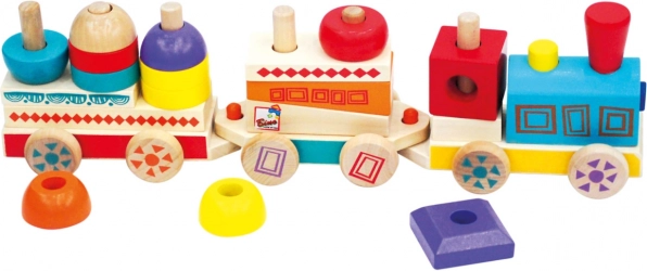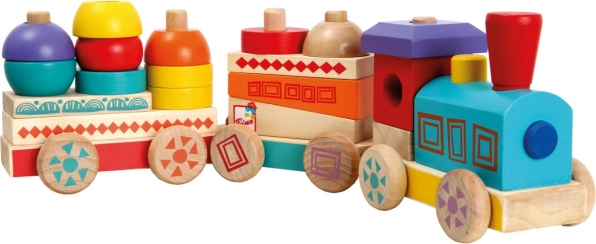Pisan lesen vlakec v »MAXI« velikosti je hkrati vlečna igrača in sestavljanka. Z zlaganjem vagončkov iz kock različnih oblik lahko najmlajši razvijajo domišljijo in motorične spretnosti. Izdelan iz trpežnega masivnega lesa. Glavne lastnosti: 3 podvozja in 18 različnih kock, MAXI velikost, trpežna lesena izvedba