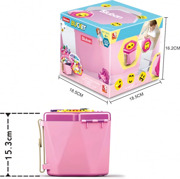 Komplet kock Sluban v rožnatem vedru prinaša ure zabave in razvijanja domišljije. Prenosna embalaža s pokrovom – gradbeno podlago – omogoča gradnjo kjerkoli in kadarkoli. Zaradi nizke zahtevnosti je idealen za otroke od 4. leta dalje, z združljivostjo z LEGO, COBI in MEGA BLOKS pa zlahka razširite svojo zbirko.