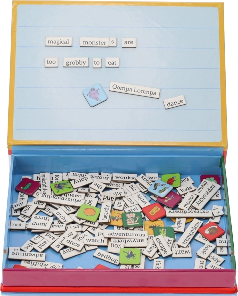 Ta edinstvena igra vsebuje 200 magnetnih besed navdihnjenih z knjigami znanega avtorja Roalda Dahla. Vsaka beseda je dopolnjena s čudovitimi ilustracijami sira Quentina Blakea, ki zgodbam dodajajo avtentičnost. Popolno za vadbo angleškega jezika za otroke in odrasle.