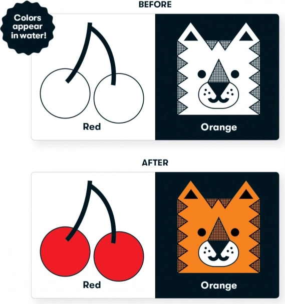 Čarobno branje v kadi znamke Mudpuppy spremeni vsako kopanje v veselo raziskovanje. Dovolj je, da knjižico potopite v vodo in črno-bele ilustracije se spremenijo v živahno barvne slike. Otroci se tako na igriv način učijo barv in zaznavajo spremembe, ki jih prinese voda.