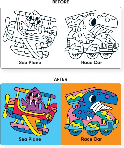 - Interaktivni barvni učinek – slike se po namočenju razsvetlijo in postanejo vidnejše.