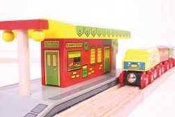 Tradicionalna podeželska železniška postaja znamke Bigjigs Rail je idealna za vstopanje in izstopanje potnikov na vsaki leseni železnici. Svetle barve in učinkovita zasnova se odlično ujemata s katero koli leseno železnico. Del paketa sta drevo in svetilka za dopolnitev scenarija.