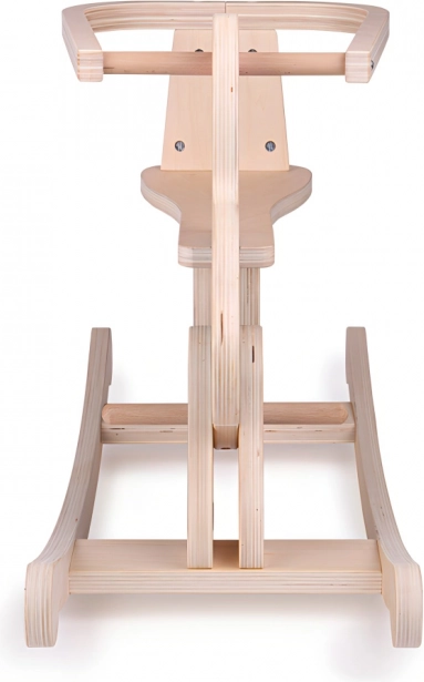 Ta stilski gugalni zajček iz odpornega vezanega lesa čudovito poživi vsak otroški prostor. Varnostno naslonjalo z ograjico drži otroka trdno v sedlu, medtem ko nežen gugalni gib podpira razvoj motorike, ravnotežja in samozavesti v gibanju.