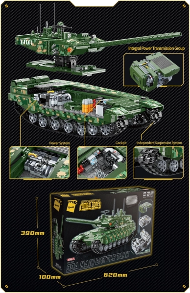 Sestavite ikonični kitajski tank 99A iz 2.743 kosov in odkrijte njegove skrivnosti zahvaljujoč lahko dostopni notranjosti, popolnoma vrtljivemu stolpu in neodvisno vzmetovanemu podvozju. Edinstvena posebnost je velik model pogonske enote 150HB-2, ki omogoča raziskovanje konstrukcijskih podrobnosti. Set Qman je združljiv z drugimi znamkami in izdelan iz vzdržljivega ABS plastike.