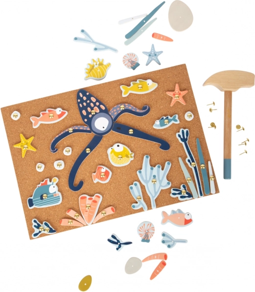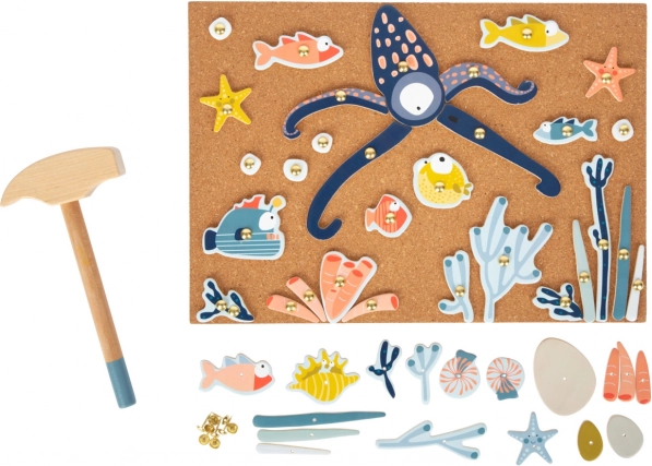 Priloženo kladivce in žebljički omogočajo otrokom razvijati svoje spretnosti in ustvarjati edinstvene morske prizore. Idealna izbira za spodbujanje ustvarjalnosti in domišljije.