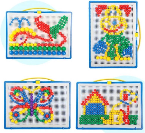 Ta igrača je priljubljena pri generacijah otrok in nostalgično obujena pri odraslih. Enostavna zasnova, sestavljena iz barvnih plastičnih gobic različnih velikosti in perforirane plošče za njihovo vstavljanje. Vse je shranjeno v prenosljivem kovčku, da lahko vaš otrok vzame svojo najljubšo igračo kamorkoli.
