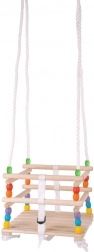 Privoščite svojim otrokom varno in zabavno guganje na leseni gugalnici s pisanimi kroglicami Bigjigs Toys. Robustni sedež z naslonom in stranskimi zaščitami, varnostni pas ter močne vrvi zagotavljajo udobje in zanesljivost med guganjem. Lakirana površina povečuje obstojnost in olajša vzdrževanje.