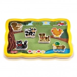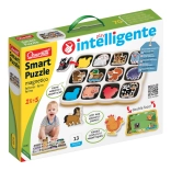 Quercetti magnetna vstavljanka Kmetija je čudovita igrača za malčke. Na eni strani table lahko otroci vstavljajo magnetke v pripravljene odprtine, kar jim pomaga razvijati prepoznavanje oblik in barv. Slikovni koščki se zaradi magnetov zlahka pritrdijo in jih je možno priročno shraniti za nadaljnjo igro.