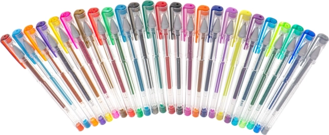 Ustvarjajte sijoče napise, ilustracije in okraske z 12 bleščečimi in 7 kovinskimi gelnimi peresi. Idealno za voščilnice, scrapbooking in bullet journal.