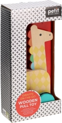 Vlečna igrača žirafa je idealen pripomoček za otroke, ki se učijo hoditi. S pisanimi kolesi in žirafinim vzorcem razveseljuje vsakogar s svojo zabavnostjo in estetiko.