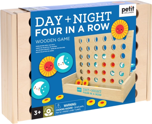 Lesena igra štiri v vrsti dan in noč zahteva od igralcev ne le hitro razmišljanje, temveč tudi sposobnost strateškega načrtovanja. Cilj je postaviti štiri žetone zapored na mrežo. Žetoni imajo atraktivno sonce in luna zasnovo, ki bo navdušila tako majhne kot velike igralce.