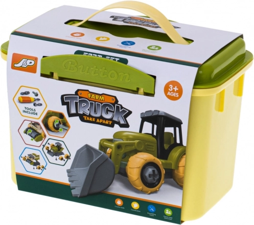 Vsi deli so varno shranjeni v praktičnem plastičnem zaboju, ki olajša prenašanje in shranjevanje celotnega seta. Odlično darilo za vsakega malega ljubitelja traktorjev in domačih živali.