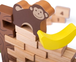 Odkrijte pametno igračo, ki otroke zabava in uči. Lesena motorična igra Padajoča džungla združuje napeto izrivanje delčkov z zabavnim seštevanjem točk. Cilj je, da zid ne pade, hkrati pa z oštevilčenih opek zberete čim več točk. Naravna lesena zasnova ter igrivi motivi opičke in banane vabijo k ponovnemu igranju.