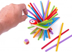 Igra pomaga otrokom razvijati fino motoriko, koordinacijo očesa in roke natančno pri zlaganju in uravnoteženju paličic.